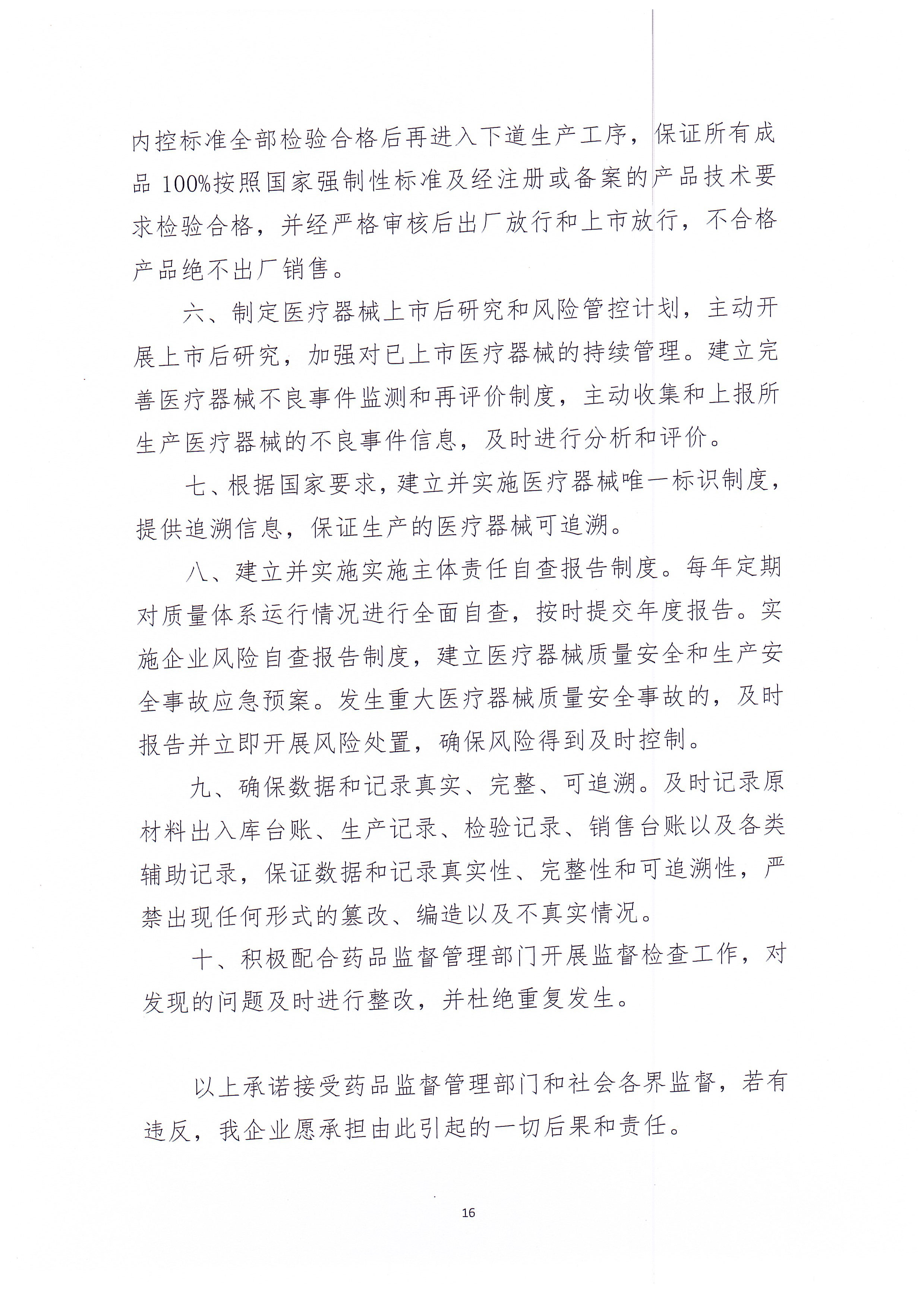醫(yī)療器械質(zhì)量安全主體責任承諾書