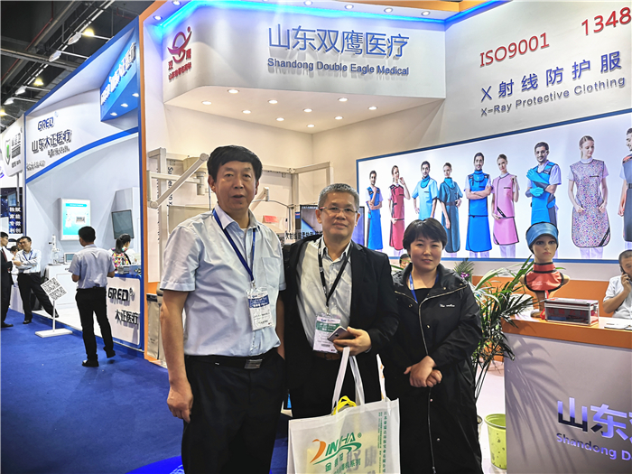 在本屆博覽會上,我司主打產品:X射線防護鉛膠系列制品;防護屏、X光機等防護裝置;安檢機防護簾;氧氣袋、肛門袋、床式醫用氣墊等多樣產品均獲得了各與會客戶的好評。來自各個和地區的政府采購機構、醫院買家及經銷商、代理商等觀眾到場參觀采購及交流體驗,通過本次博覽會,我們跟與客戶在放射防護系列產品需求上有了更好的交流,讓更多客戶了解雙鷹防護系列產品,同時跟多家外國企業達成合作意向。為我公司今年銷售的發展,奠定了良好的基礎。