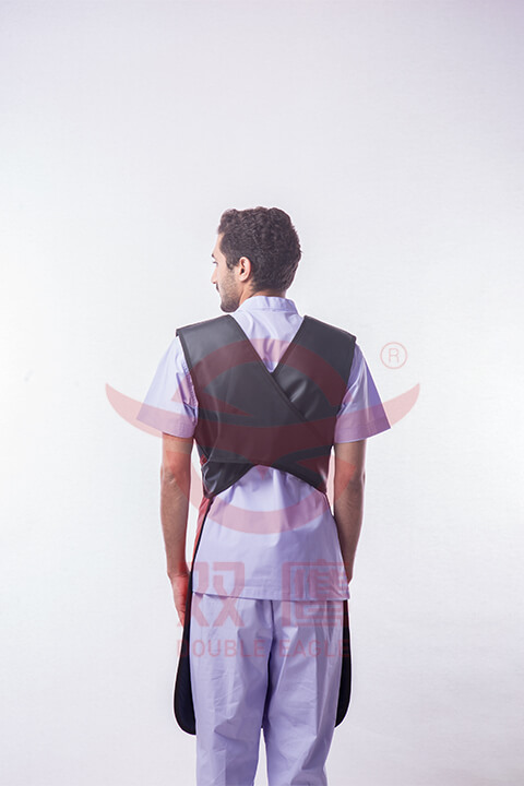 醫用X射線防護系列制品,簡稱X射線防護系列制品,材料由天然橡膠、黃丹粉經加工外包布制作而成。防護系列制品鉛當量:0.25mmpb、0.35mmpb、0.5mmpb。鉛膠衣就是X射線防護系列中的一種。