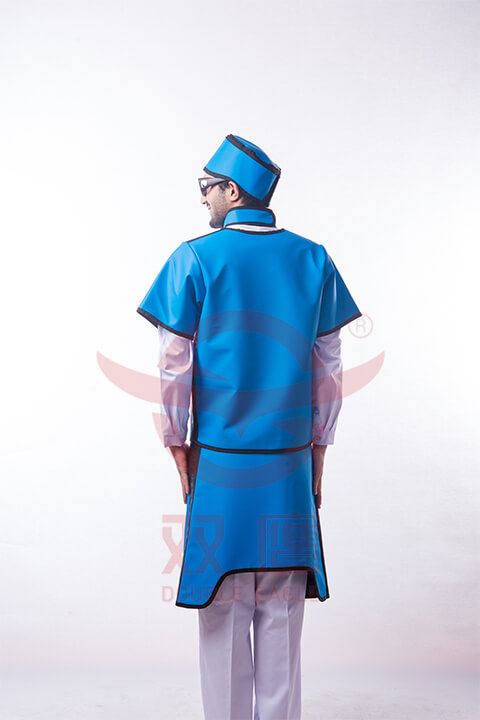 在進行放射性診療檢查時,要檢查X射線防護服附屬部件是否齊全,是否符合自己所需的鉛當量,然后再進行操作。